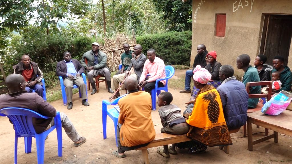 Residents and local leaders in a crisis meeting at the deceased’s home.